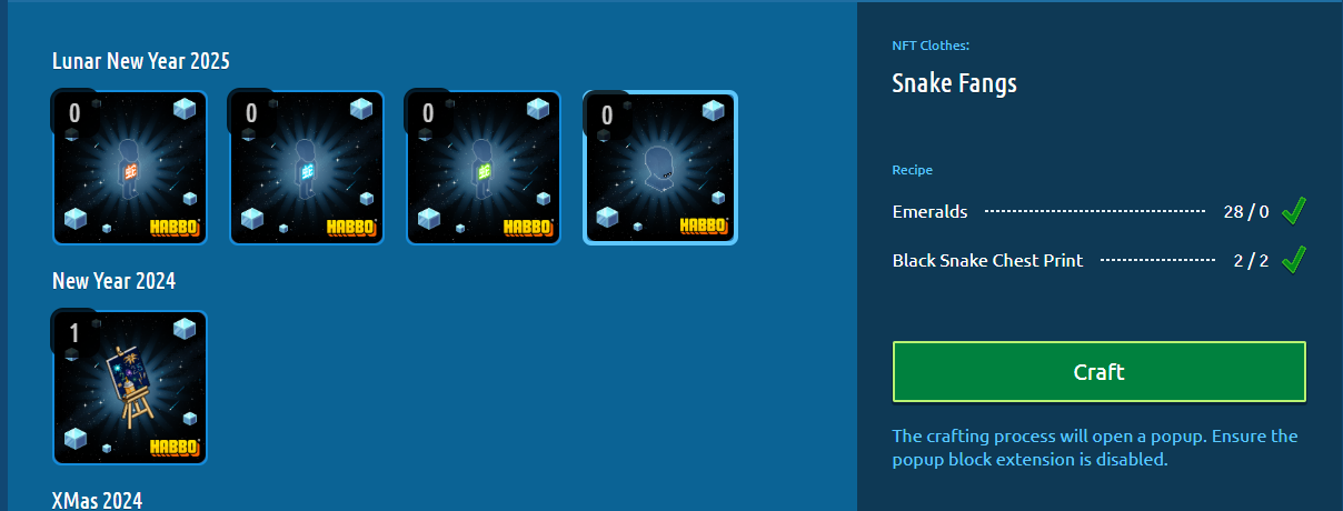 Só ir na página de crafting (collectibles.habbo.com/crafting/), clicar no visual que você quer criar e apertar em "Craft":