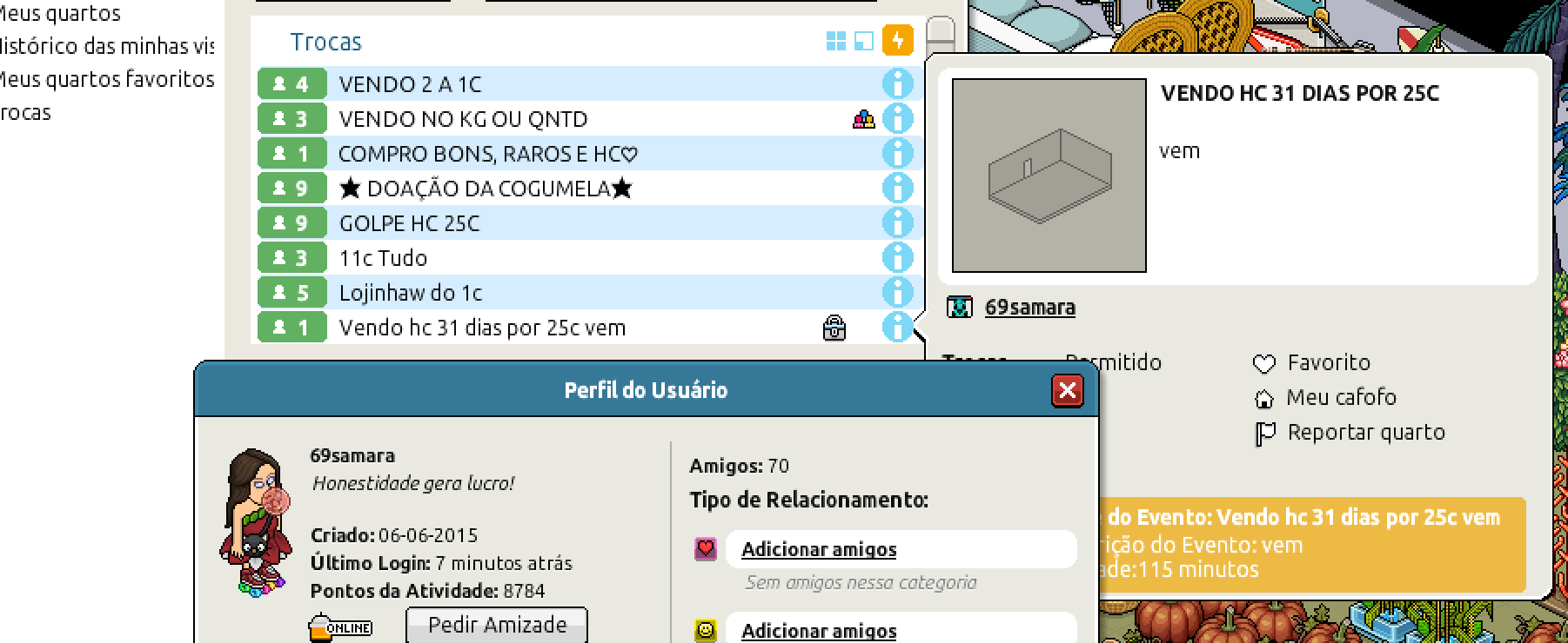 Esses golpes envolvendo trocas infelizmente eles raramente fazem algo, exemplo: a 69samara / gatinhafrufrBoy aplicando golpe de HC 31 dias por 25c há anos...