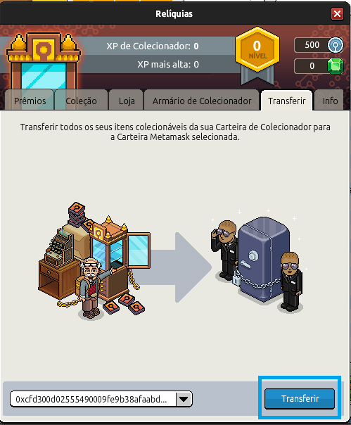 O item comprado na loja vai para a "Carteira do Colecionador", se deseja que o item seja enviado para a "Carteira metaMask" basta ir na aba Transferir e clicar no botão azul